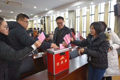大会主持人祁德新同志宣读本次选举办法,全体党员表决通过。接着,大会按照要求表决通过了监票人和计票人名单,由纪委副书记顾天滨同志担任监票人,王曦、王志慧等两名同志担任计票人。