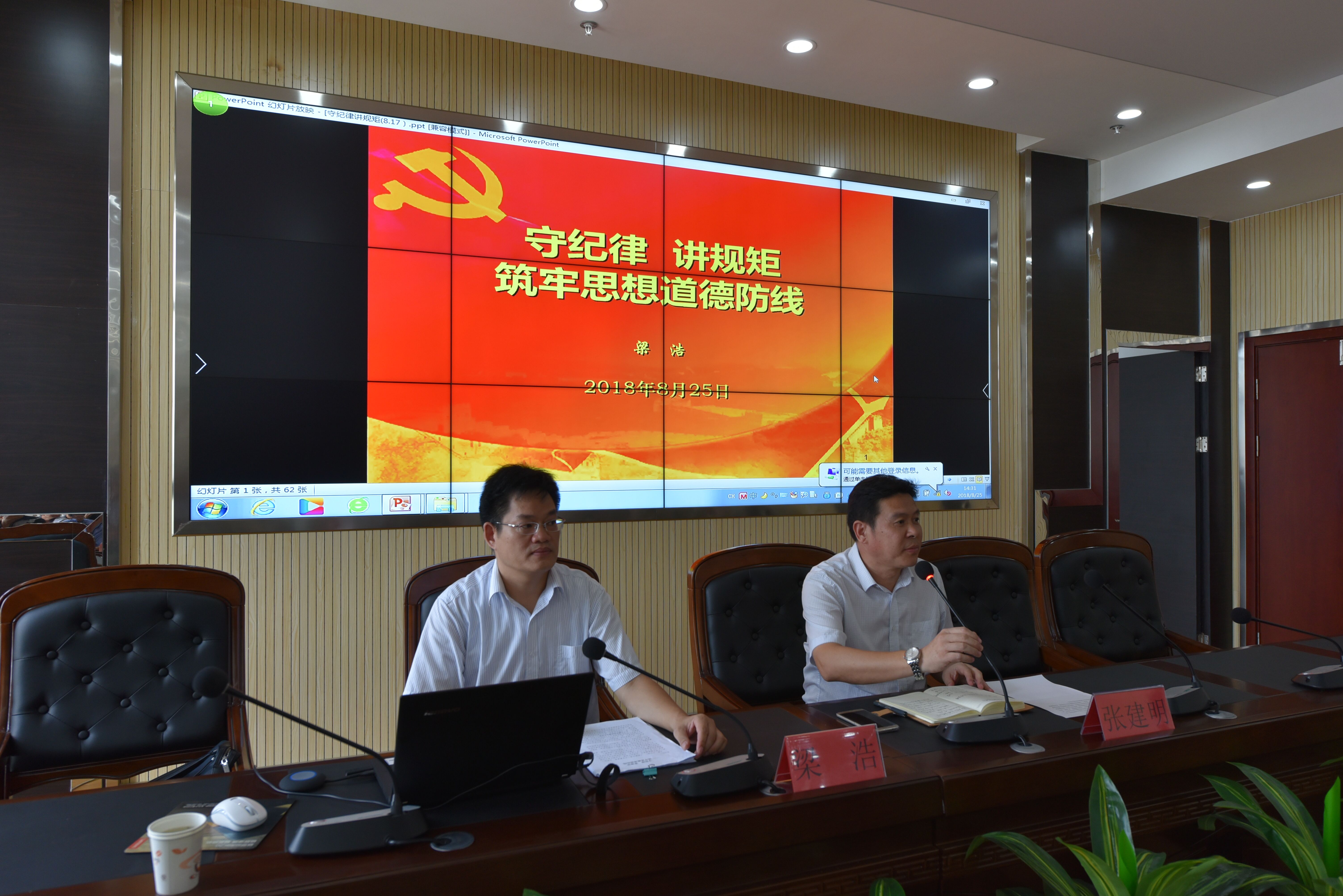 8月25日,市纪委第八纪检监察室主任梁浩同志,为我校全体党员、中层干部做了《守纪律、讲规矩,筑牢思想道德防线》的专题报告。